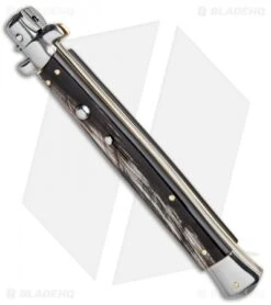 SKM 13″ Italian Stiletto Flat Grind Automatic Knife Dark Horn (6″ Satin)