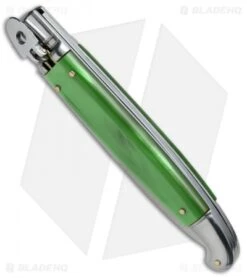 SKM 9.5″ Fancy Lever Lock Automatic Knife Green Acrylic (4″ Satin Bayo)